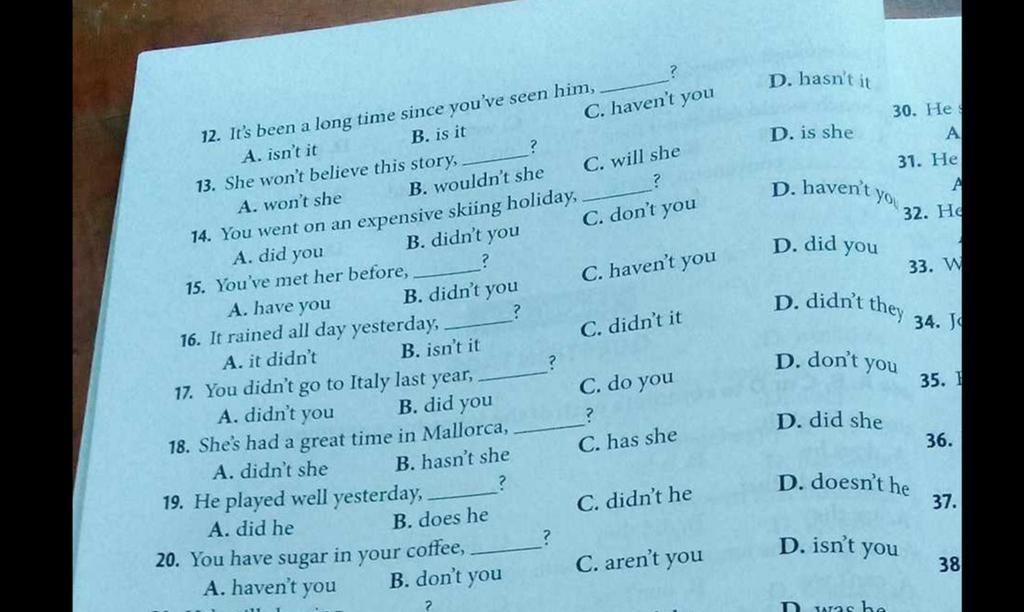 `->` câu đó được coi là câu phủ định `-` câu hỏi đuôi dạng khẳng định