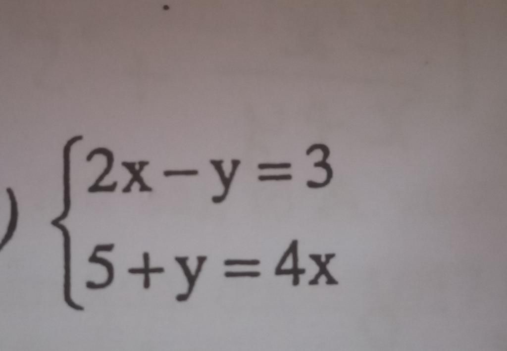 `<=>{(y=4x-5),(2x-(4x-5)=3):}`