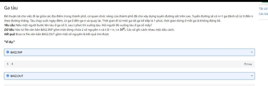 Để thuận lợi cho việc đi lại giữa các địa điểm trong thành phố, cơ quan chức năng của thành phố đã cho xây dựng tuyến đường sắt trên cao. Tuyến đường sẽ có n+1 ga đánh số từ 0 đến n