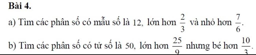 các phân số lớn hơn `25/9` và nhỏ hơn `10/3` là `50/17 ; 50/16`