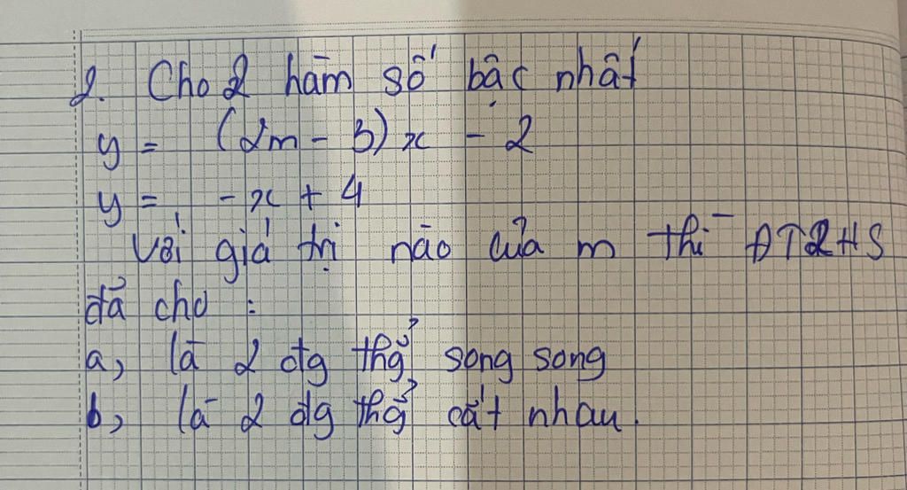 a.Để đồ thị hàm số $y=(2m-3)x-2$ song song với $y=-x+4$