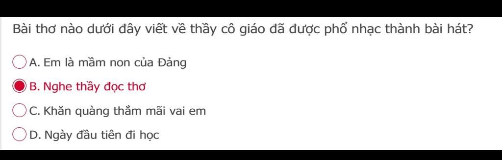 sao đáp án trg đề thi của tớ đ.án lại là nghe thầy đọc thơ