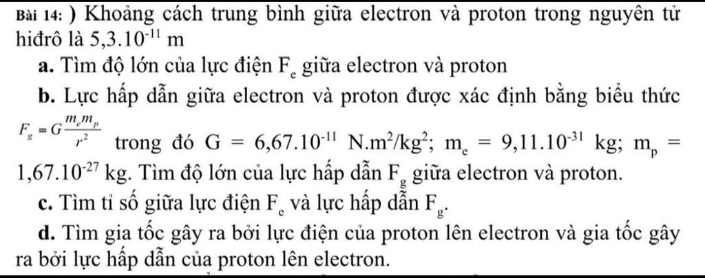 d. Gia tốc gây ra bởi lực điện của proton lên electron: