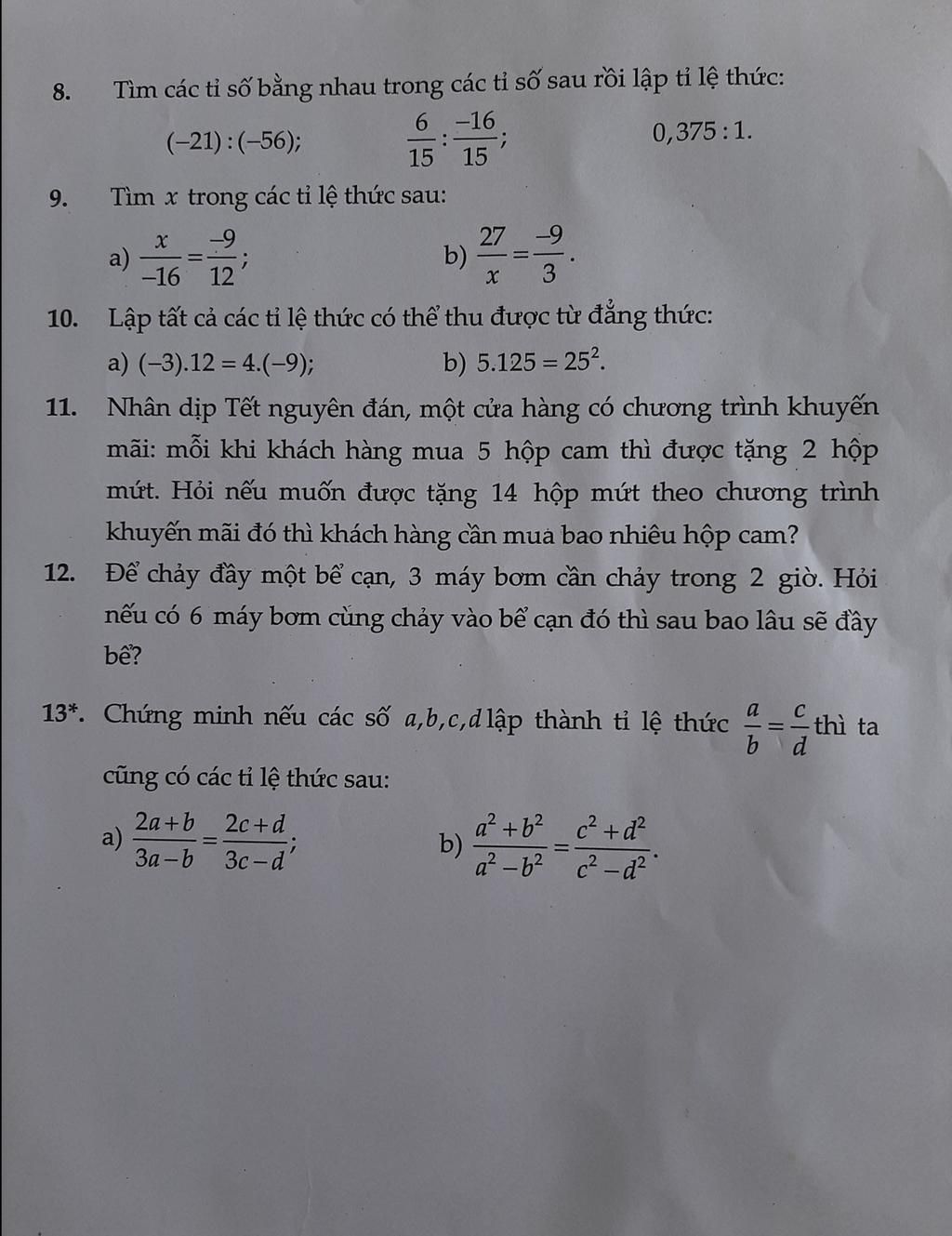 10. Lập tất cả các tỉ lệ thức có thể thu được từ đẳng thức: