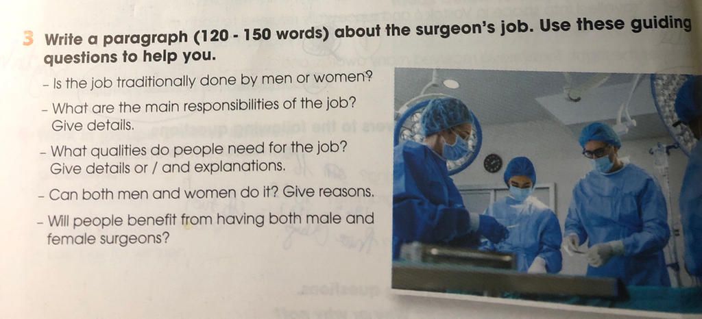 Chào các bạn, hôm nay tôi sẽ nói về công việc bác sĩ phẩu thuật .Công việc của bác sĩ phẫu thuật theo truyền thống là phổ biến nhất đối với nam giới. Các bác sĩ phẫu thuật phải thực hiện các phẫu thuật cho bệnh nhân. Họ cũng phải đưa ra các quyết định quan trọng về sức khỏe và sự an toàn của bệnh nhân. Bên cạnh kiến thức y học, bác sĩ phẫu thuật cần cả thể lực và trí lực để thực hiện những ca mổ lâu dài, mệt mỏi. Bác sĩ phẫu thuật cũng cần phải có thị lực tuyệt vời và đôi tay khéo léo mới có thể phẩu thuật được. Bác sĩ phẫu thuật làm việc theo nhóm, vì vậy anh/ cô ta cần có kỹ năng giao tiếp và làm việc theo nhóm tốt. Dù truyền thống được coi là công việc của nam giới, nhưng hiện nay số lượng nữ bác sĩ phẫu thuật đang tăng lên. Phụ nữ cũng có tinh thần mạnh mẽ như nam giới, và họ có thể thực hiện các cuộc phẫu thuật lâu dài. Tóm lại, phụ nữ có thể làm bác sĩ phẫu thuật giỏi, và mọi người sẽ được lợi khi có bác sĩ phẫu thuật cả nam và nữ.