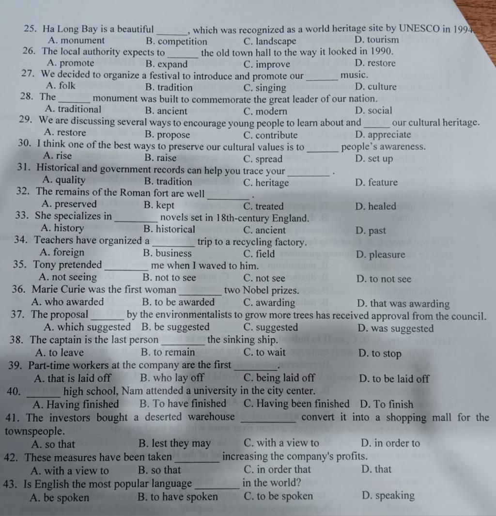 `-` with a view to doing sth: để làm gì `->` `C` sai (sau từ cần điền là V thường)