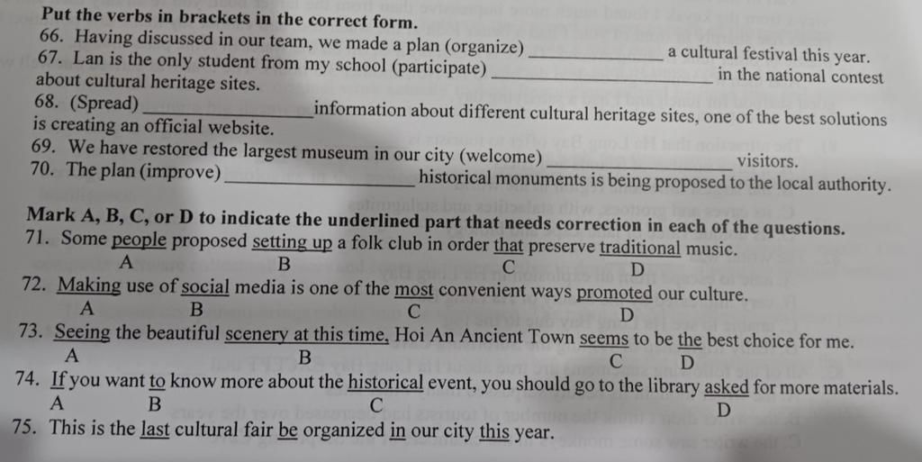 `=>` Lan là học sinh duy nhất của trường tôi tham gia về di sản văn hóa trong cuộc thi quốc gia.