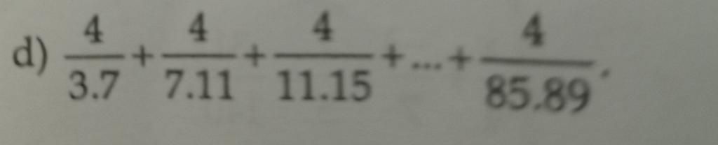 `= 4 . (1/(3.7) + 1/(7.11) + 1/(11.15) + ... + 1/(85/89))`