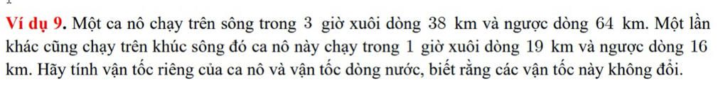 Vậy vận tốc xuôi dòng và ngược dòng của ca nô lần lượt là $32km/giờ$ và $38km/giờ$.