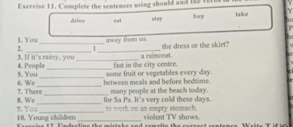 8.We should take for Sa Pa. It’s very cold these days.