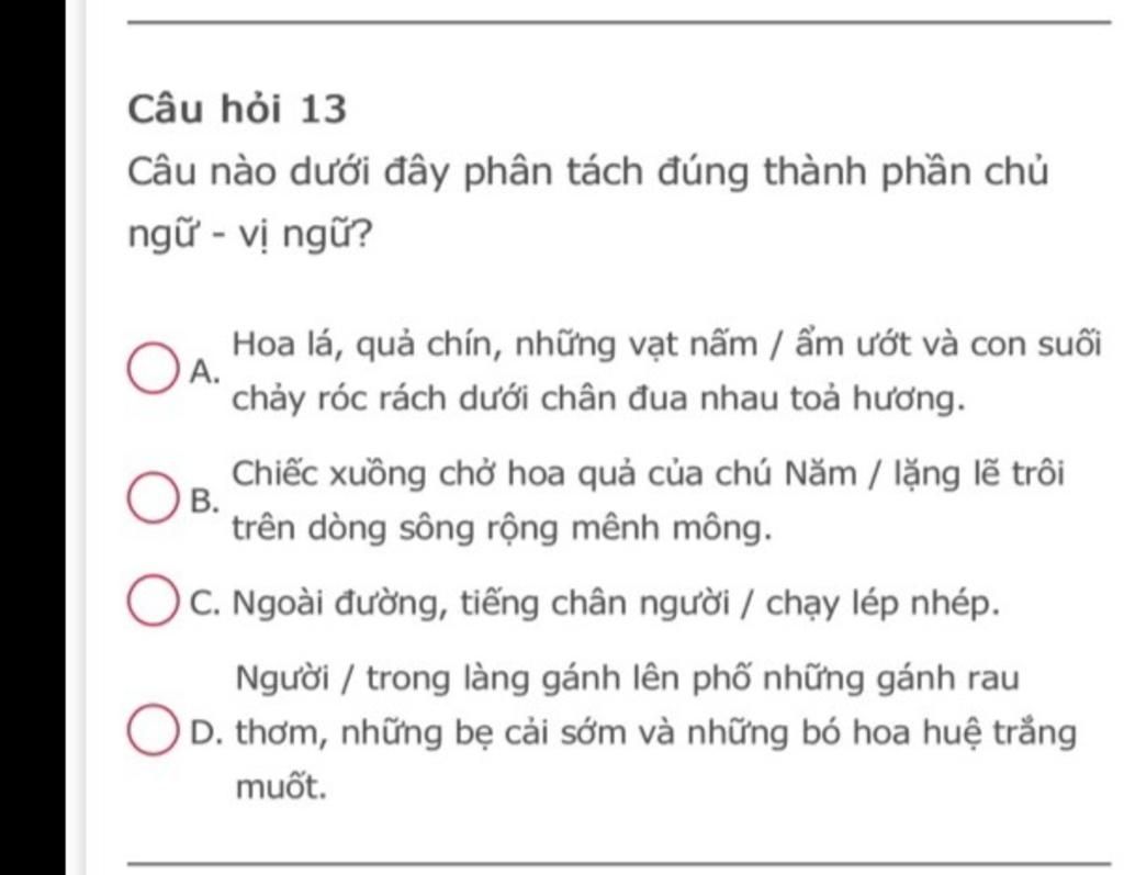 `A.` CN : Hoa lá , quả chín , những vạt nấm ẩm ướt và con suối chảy róc rách dưới chân