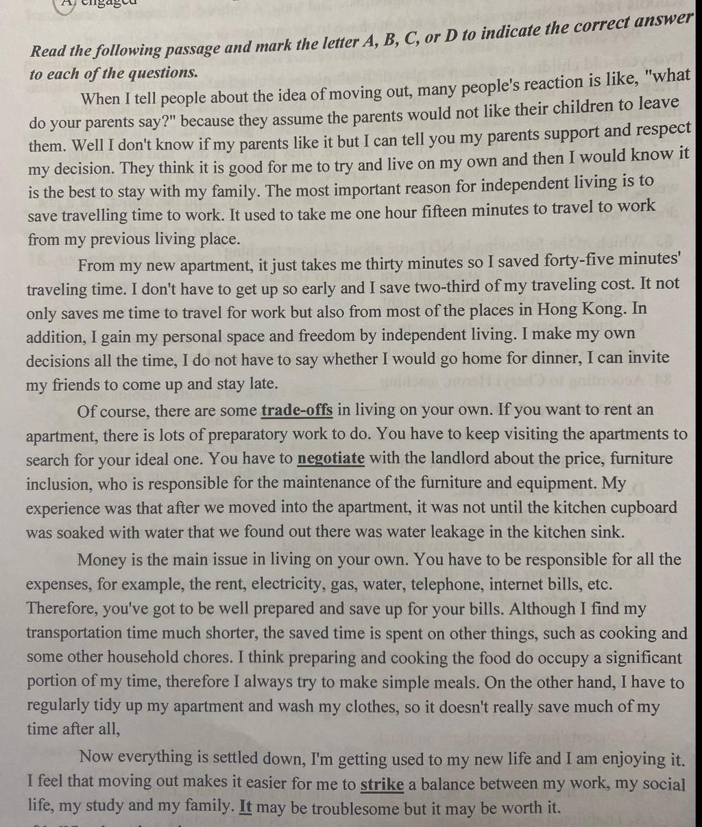 `-` Dẫn chứng trong đoạn 1: "The most important reason for independent living is to save traveling time to work."