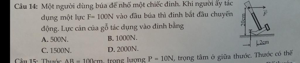 \Rightarrow {F_c} = F.\dfrac{{{d_1}}}{{{d_2}}} = 100.\dfrac{{20}}{2} = 1000N