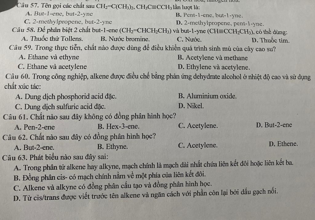 Alkyne không có đồng phân hình học.