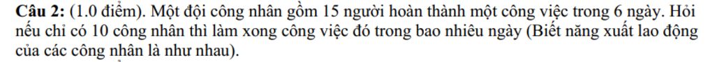 Vậy cần `9` ngày để `10` công nhân làm xong công việc.
