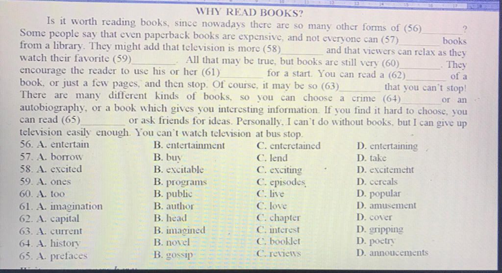 Some people say that even paperback books are expensive, and not everyone can (57)
