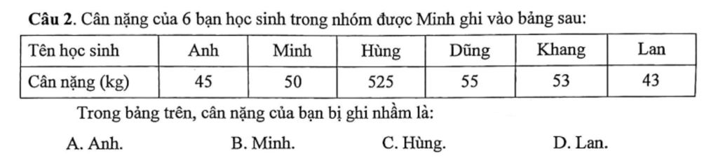 `=>` Cân nặng của bạn Hùng bị ghi nhầm