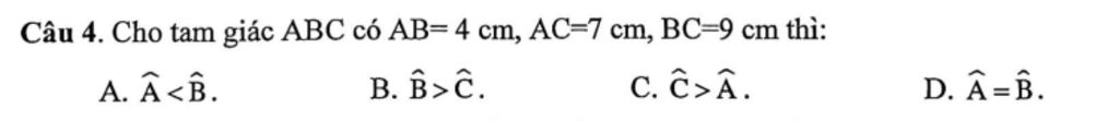 `***` Định lí: Góc đối diện với cạnh lớn hơn thì góc đó lớn hơn.
