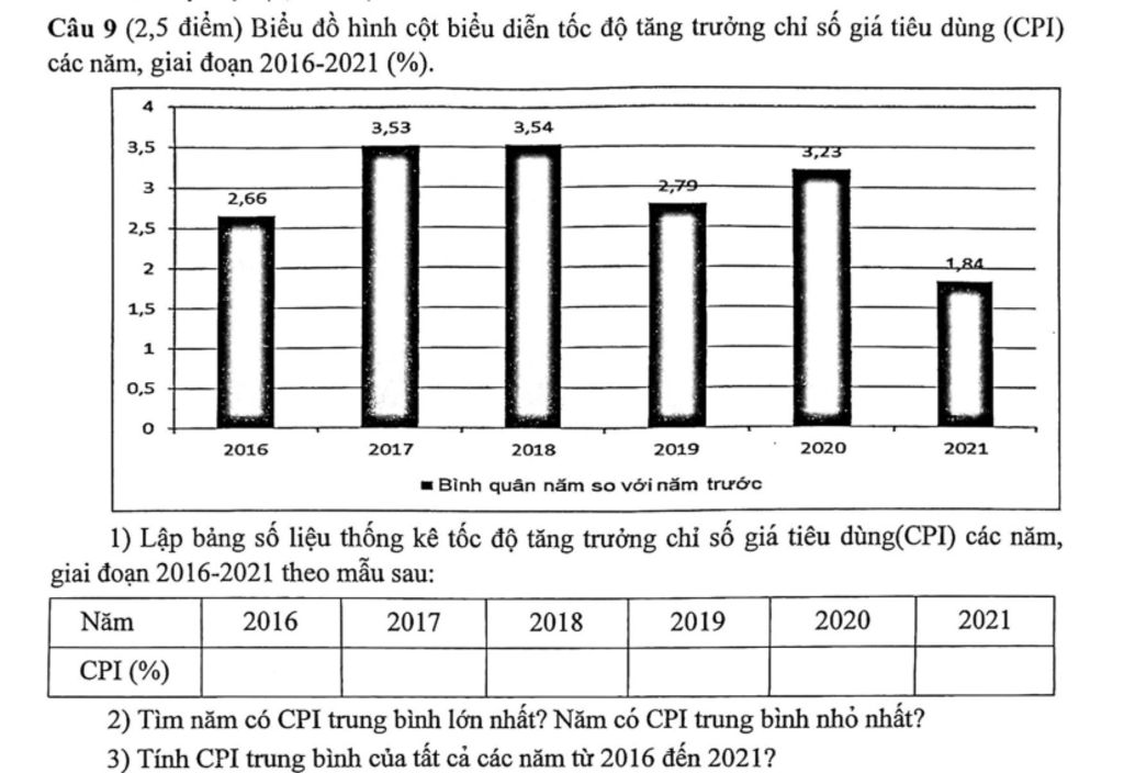 CPI trung bình của tất cả các năm từ 2016 đến 2021 là:
