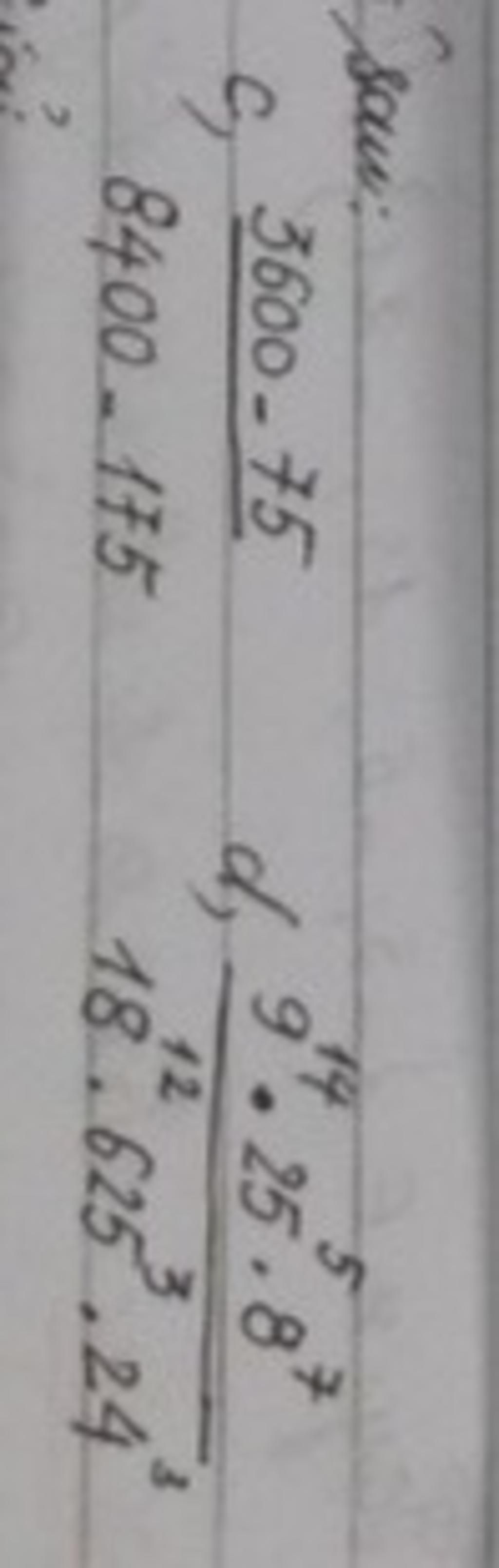 d) $\dfrac{9 mũ 14 . 25 mũ 5 . 8 mũ 7}{18 mũ 12 . 625 mũ 3 . 24 mũ 2}$