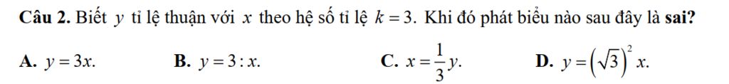 `y = 3x` chứ có phải `3:x` đâu nhỉ?