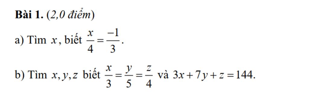 `x/3=y/5=z/4=(3x+7y+z)/(3.3+7.5+4)=144/48=3`
