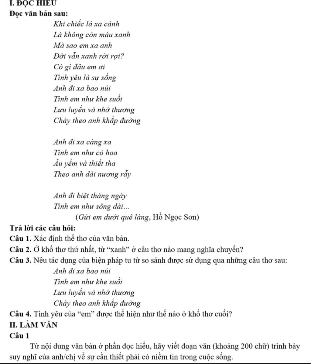 4. Hai dòng thơ cuối dù ngắn gọn nhưng thể hiện được tình cảm chung thủy, sắt son đợi chờ của người con gái dành cho người yêu của mình. Dù cho người chồng có đi trong suốt thời gian dài thì nhân vật em vẫn khẳng định là tình em như sông dài. Biện pháp so sánh đã tăng sức gợi hình, gợi cảm xúc, tăng giá trị biểu đạt cho tình cảm chung thủy của nhân vật em