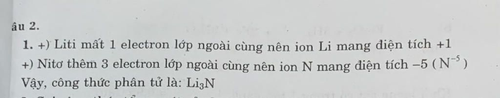 Câu hỏi là tính điện tích của ion liti và nito trong Li3N ( Liti nitrua). Đọc đáp án mình không hiểu tại sao N mang điện tích -5. Mọi người giải thích giùm mình với cảm ơn nhiều