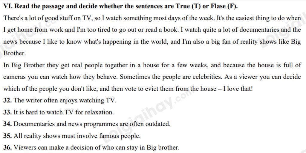`-` Xem tivi hầu hết ngày trong tuần `->` thích xem tivi