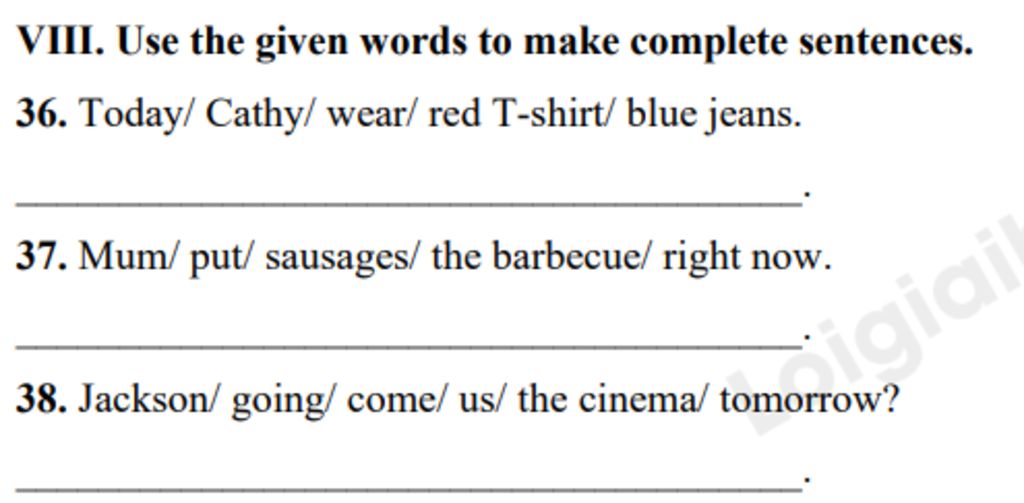 36. Today Cathy is wearing a red T-shirt and blue jeans.