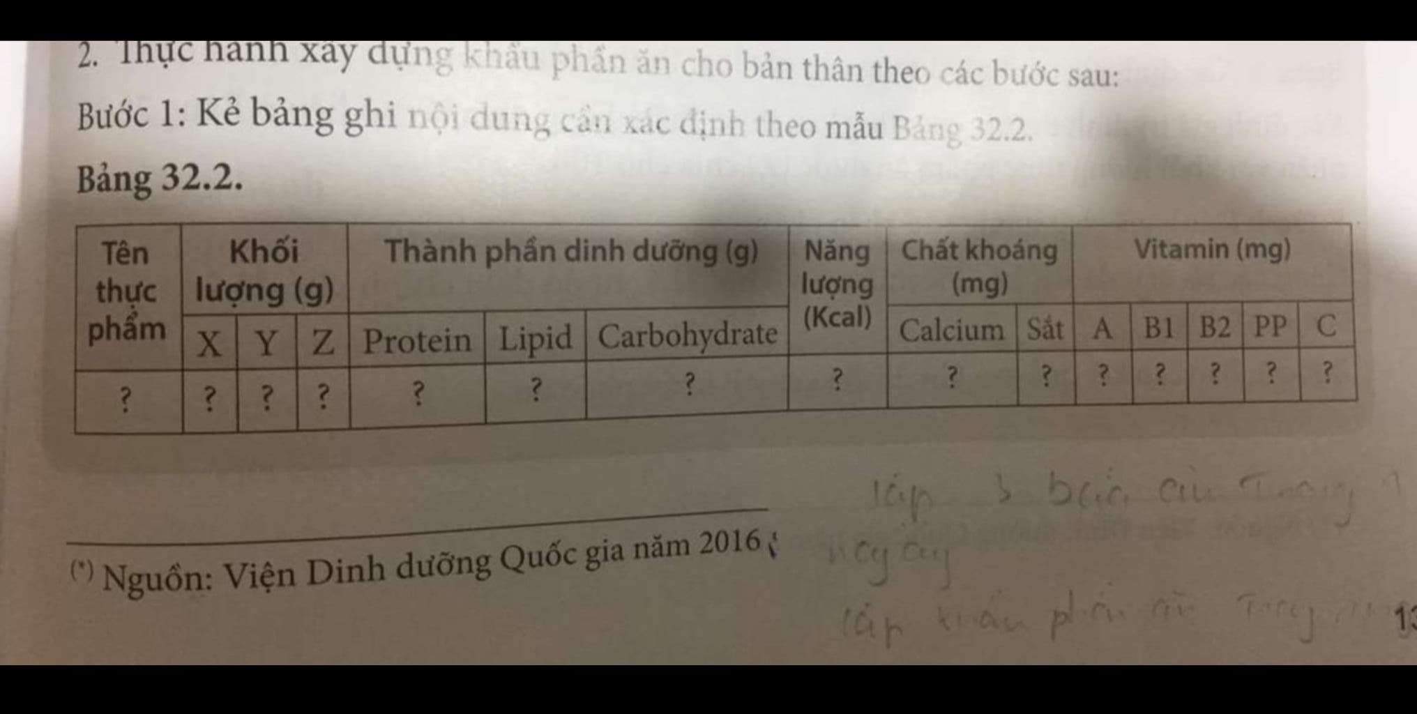 `-` Bước 3: Xác định giá trị dinh dưỡng của các loại thực phẩm