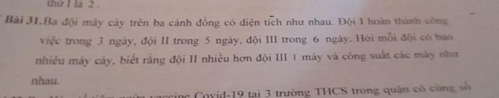 Vậy số máy cày của mỗi đội lần lượt là `:` `10` máy `;` `6` máy `;` `5` máy
