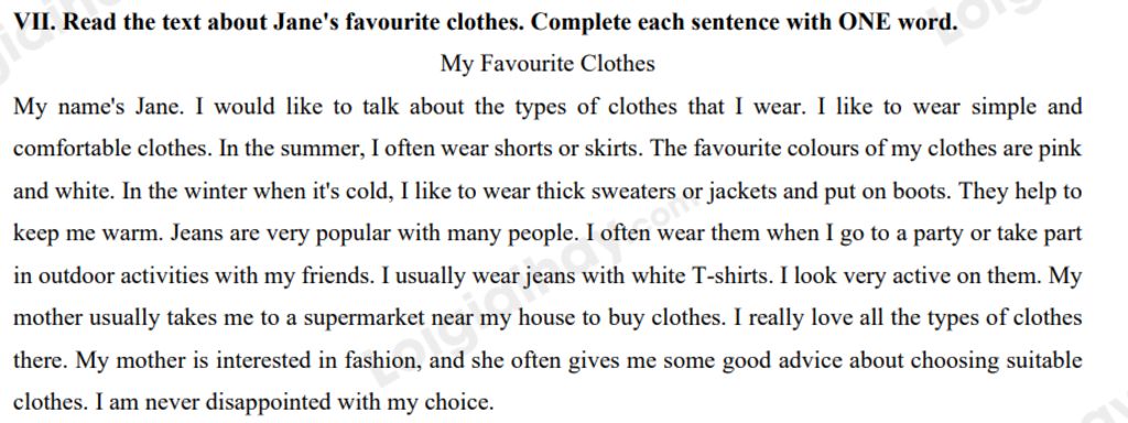 Thông tin: My mother is interested in fashion, and she often gives me some good advice about choosing suitable clothes.