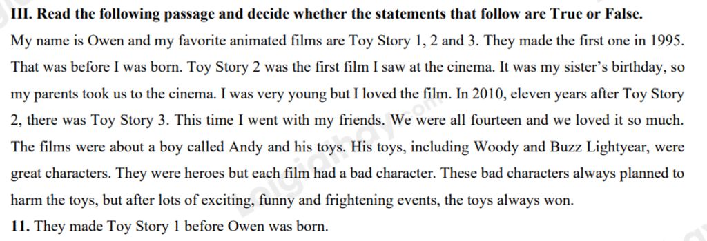 `->` In 2010, eleven years after Toy Story 2, there was Toy Story 3. This time I went with my friends.