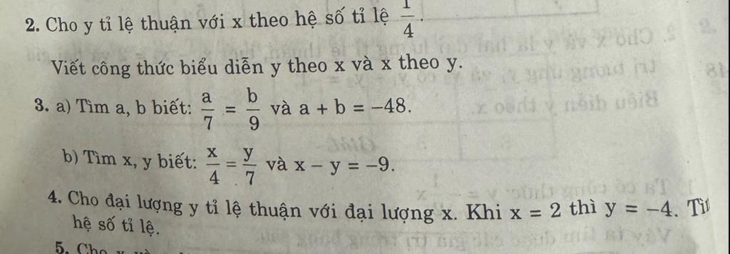 2) Ta có y tỉ lệ thuận với x theo hệ số là 1/4