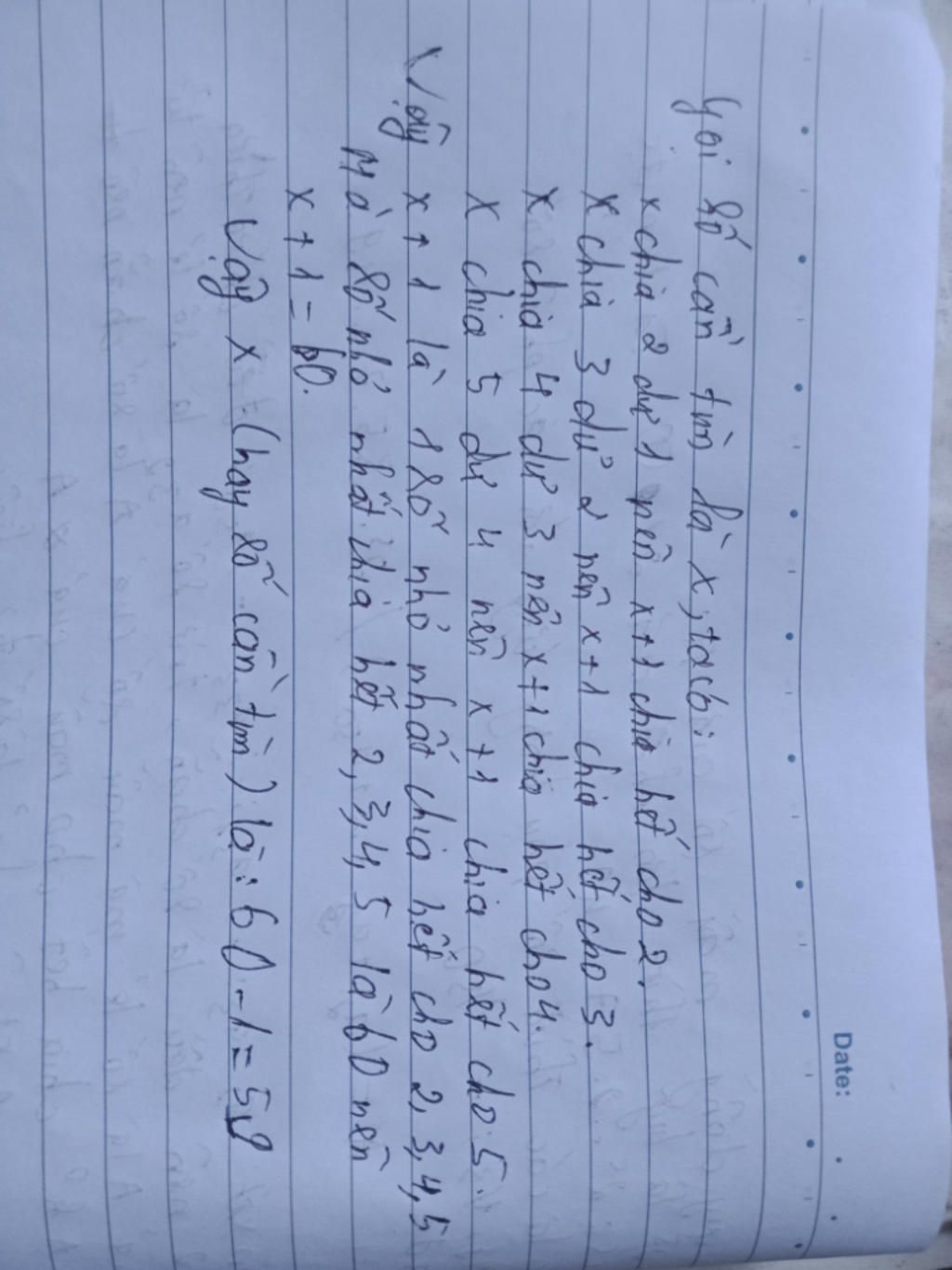 Vậy x + 1 là một số nhỏ nhất chia hết cho 2 ; 3 ; 4 ; 5