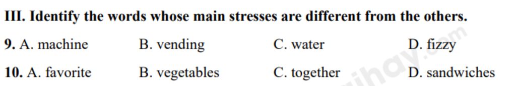 `9`.`bbA` nhấn trọng âm `2`, còn lại nhấn trọng âm `1`$\\$`10`.`bbC` nhấn trọng âm `2`, còn lại nhấn trọng âm `1`