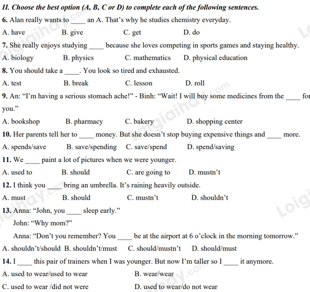 6. Alan really wants to ____ an A. That’s why he studies chemistry everyday.