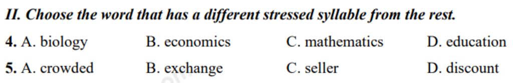 `5` B : trọng âm rơi vào âm tiết thứ 2 , còn lại là 1