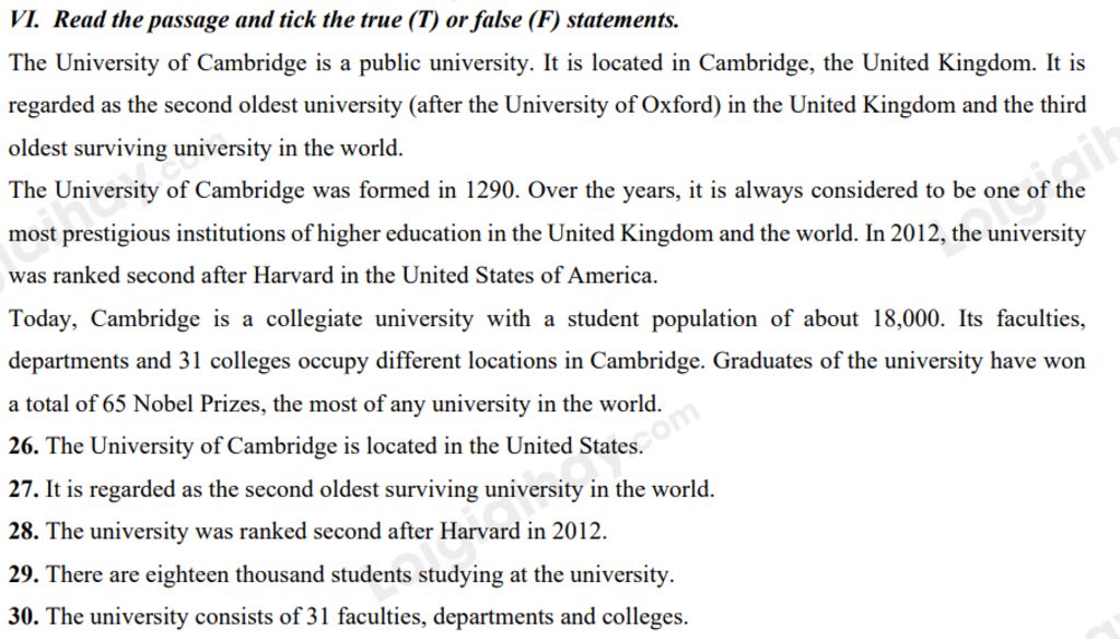 Dẫn chứng: "Today, Cambridge is a collegiate university with a student population of about 18,000."