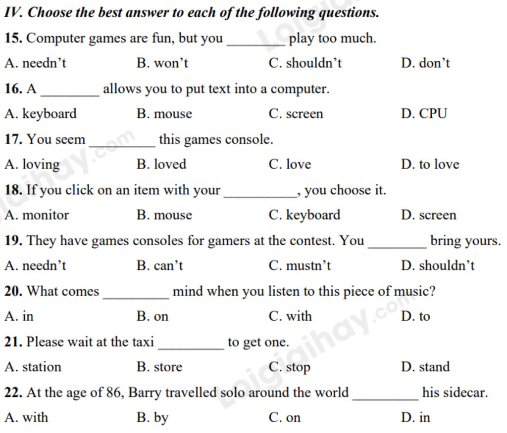 19. They have games consoles for gamers at the contest. You ________ bring yours.