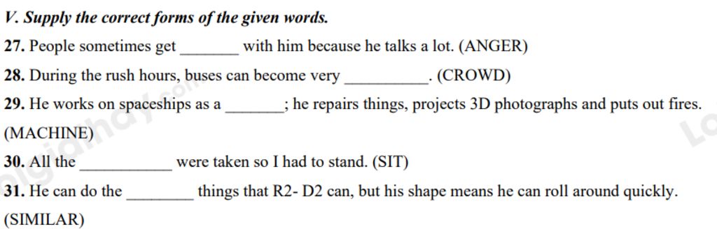 28. During the rush hours, buses can become very __crowded__. (CROWD)