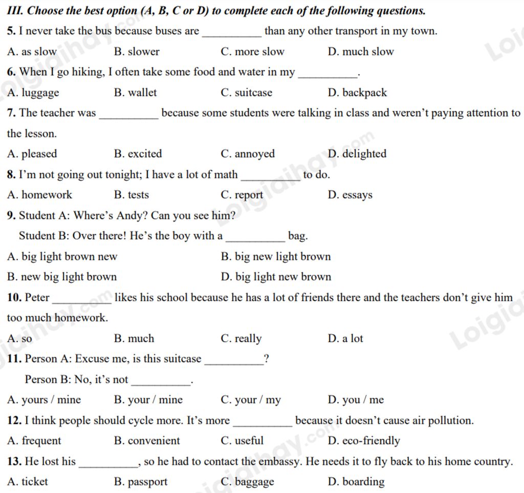 `@` trật tự tính từ`:` Opinion `-` Size `-` Age `-` Shape `-` Color `-` Origin `-` Material `-` Purpose