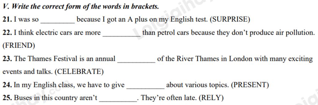 - adj-ed: tính từ chỉ trạng thái cảm xúc của người hoặc vật.