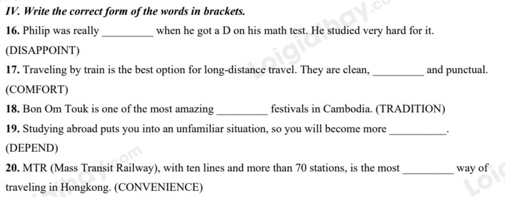 16. Philip was really _disappointed_ when he got a D on his math test. He studied very hard for it. (DISAPPOINT)