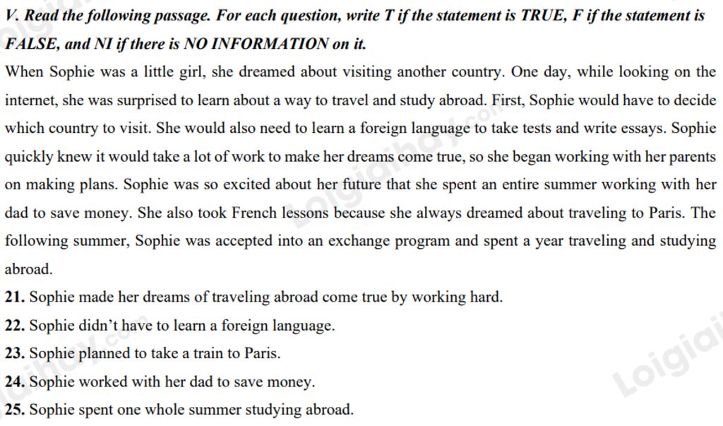 `->` Sophie was accepted into an exchange program and spent a year traveling and studying abroad.
