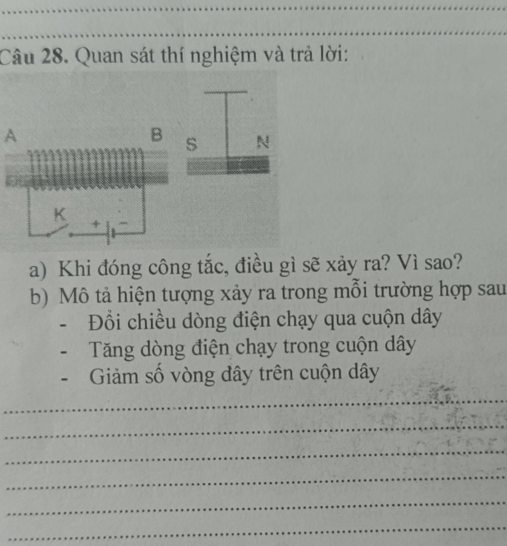 a, Khi đóng công tắc thì ống dây trở thành một nam châm điện.