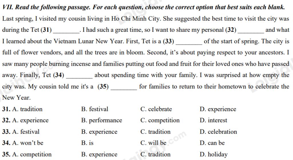 -> festival (n): lễ, lễ hội => Tet festival : lễ Tết