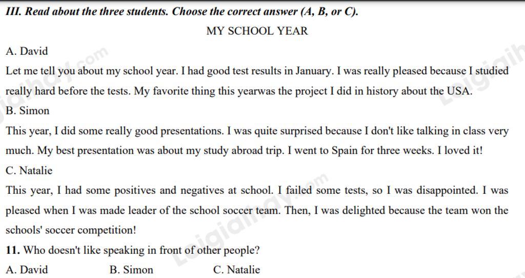 - D/c: A. David - My favorite thing this year was the project I did in history about the USA.