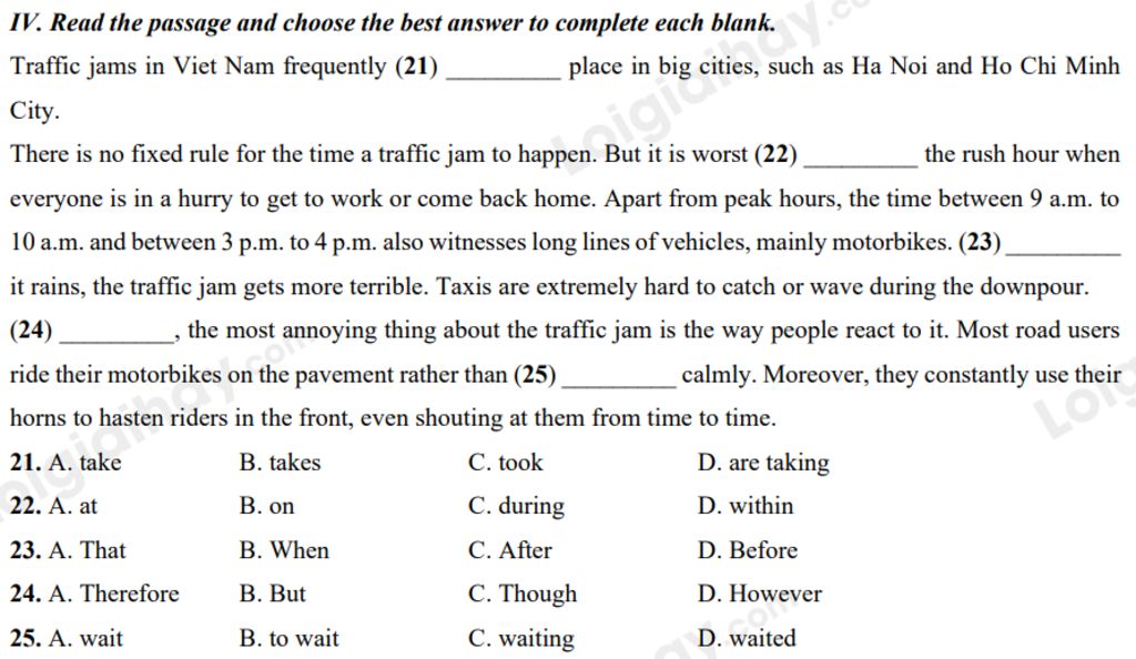 `-` “traffic jams” `->` số nhiều `->` Vinf